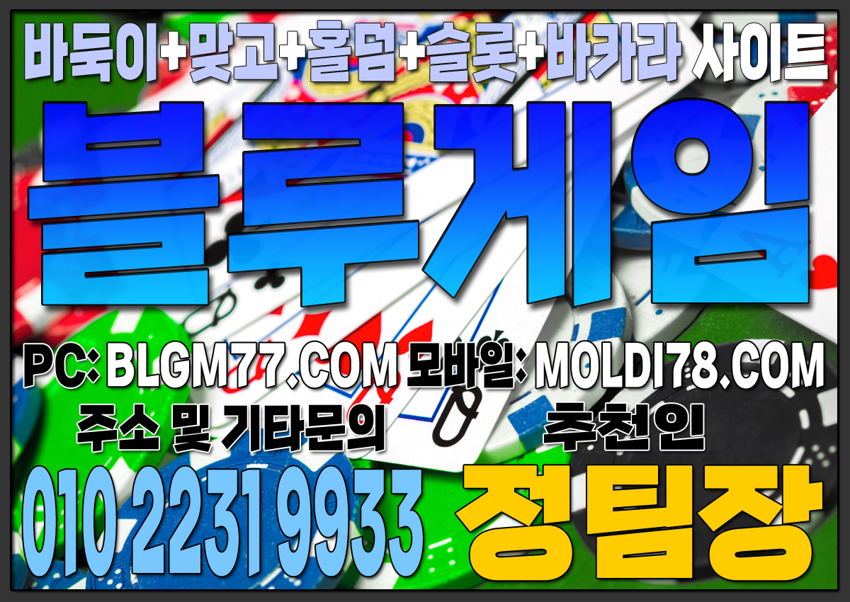 최신 정보 안내 및 기타 문의 010-2231-9933 가입추천:정팀장 텔레: jtj007지금 바로 블루게임(바둑이,맞고,홀덤,슬롯,바카라)에서 검증된 온라인 게임을 시작하세요!정기적인 업데이트와 최신 정보 안내를 통해 항상 신뢰할 수 있는 서비스를 제공합니다. 소액 및 고액 금액에 관계없이 모두가 공평한 대우를 받으며, 타 업체 대비 높은 수익률을 기대할 수 있습니다.