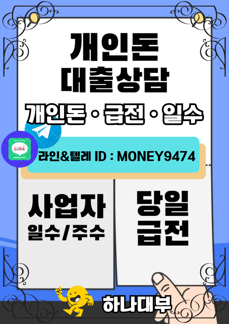 자금을 지원합니다. 사업자 일수 최대 5억까지 개인 급전 최대 600만원까지 가능하며 기간조율도 가능합니다. 자영업자, 직장인, 프리랜서, 알바생 유흥직, 일용직 등 모든 직종 신청 가능하고 단순사고자도 가능합니다. 비대면으로 진행 30분이면 승인 및 입금까지 24시간 언제든 상담과 지급이 가능합니다. 상담 요청 (비대면 가능) → 라인&텔레그램 ID : money9474 상담링크 https://dong7com.wordpress.com/ https://line.me/ti/p/pzPtmzCHEj t.me/money9474 가능 시간: 24시간 상담 가능 / 빠른 응답 #개인돈 #개인돈대출 #급전 #급전대출 #소액대출 #소액급전 #당일대출 #당일입금 #당일자금 #긴급자금 #생활비대출 #생활자금 #사업자대출 #직장인대출 #무직대출 #주부대출 #사고자대출 #연체자대출 #일수대출 #대출상담 #서울개인돈 #경기소액대출 #수원소액급전 #성남개인돈 #인천개인돈 #부산급전 #대구소액대출 #광주일수 #대전개인돈 #울산급전 #세종소액대출 #강원대출 #청주소액급전 #천안개인돈 #전주소액대출 #창원급전 #진주소액자금 #포항개인자금 #구미일수 #제주개인돈 |