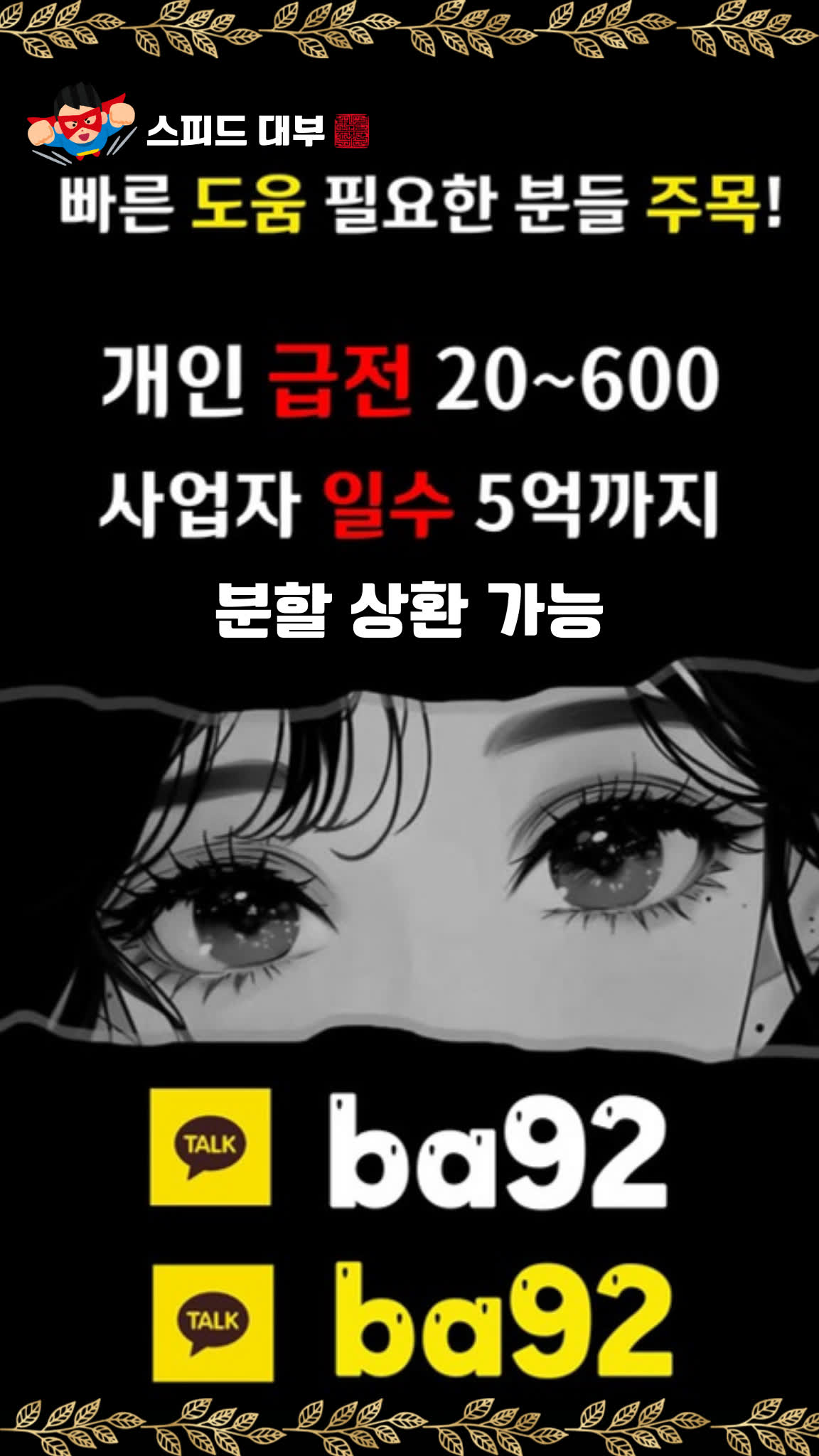 | 제목 | 오늘 입금 가능 급전 필요한 분들을 위한 개인돈 급전 일수 대출 카톡ba92 | ||||