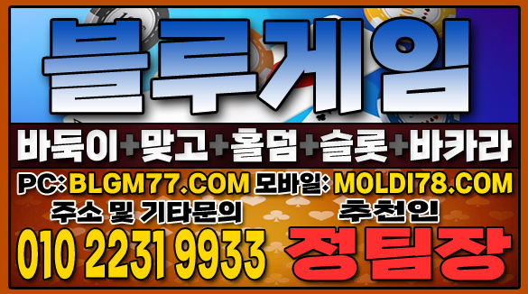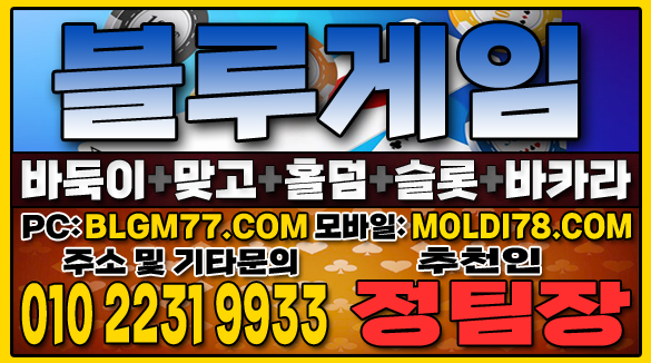 지금 바로 블루게임(바둑이,맞고,홀덤,슬롯,바카라)에서 검증된 온라인 게임을 시작하세요!정기적인 업데이트와 최신 정보 안내를 통해 항상 신뢰할 수 있는 서비스를 제공합니다. 소액 및 고액 금액에 관계없이 모두가 공평한 대우를 받으며, 타 업체 대비 높은 수익률을 기대할 수 있습니다. 최신 정보 안내 및 기타 문의 010-2231-9933 가입추천:정팀장 텔레: jtj007