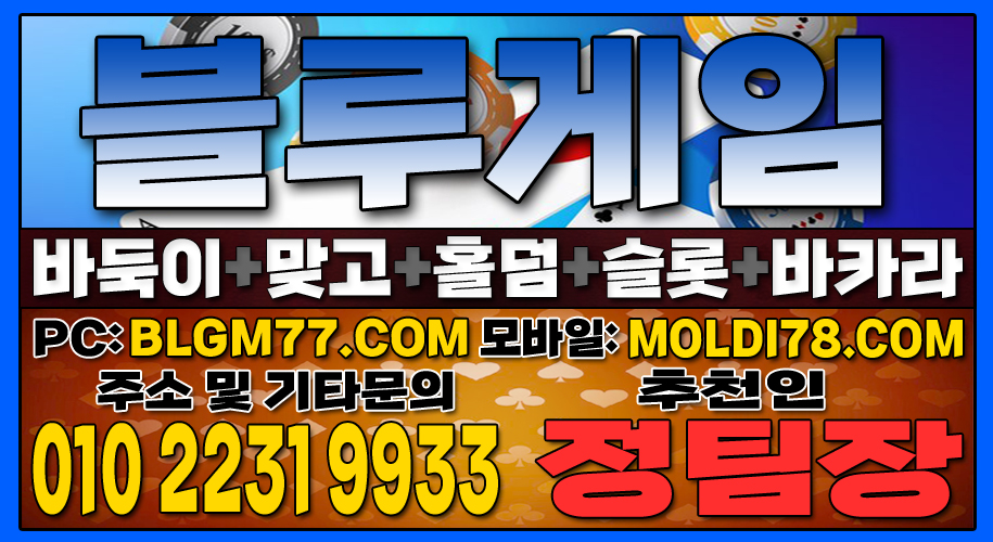 지금 바로 블루게임(바둑이,맞고,홀덤,슬롯,바카라)에서 검증된 온라인 게임을 시작하세요!정기적인 업데이트와 최신 정보 안내를 통해 항상 신뢰할 수 있는 서비스를 제공합니다. 소액 및 고액 금액에 관계없이 모두가 공평한 대우를 받으며, 타 업체 대비 높은 수익률을 기대할 수 있습니다. 최신 정보 안내 및 기타 문의 010-2231-9933 가입추천:정팀장 텔레: jtj007