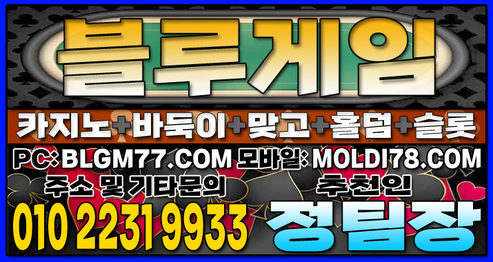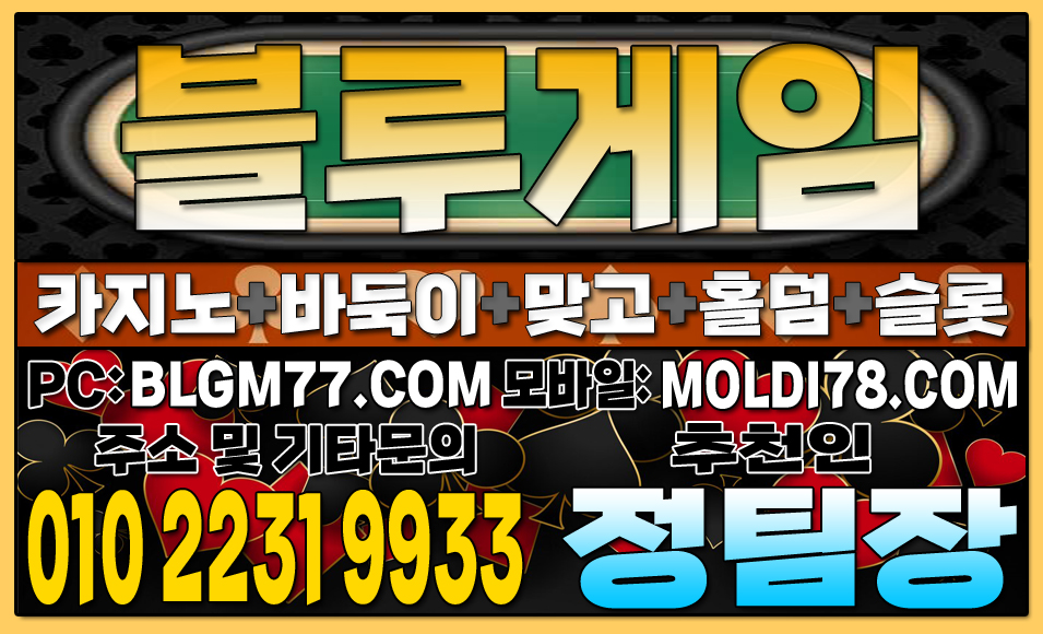 지금 바로 블루게임(바둑이,맞고,홀덤,슬롯,바카라)에서 검증된 온라인 게임을 시작하세요!정기적인 업데이트와 최신 정보 안내를 통해 항상 신뢰할 수 있는 서비스를 제공합니다. 소액 및 고액 금액에 관계없이 모두가 공평한 대우를 받으며, 타 업체 대비 높은 수익률을 기대할 수 있습니다. 최신 정보 안내 및 기타 문의 010-2231-9933 가입추천:정팀장 텔레: jtj007