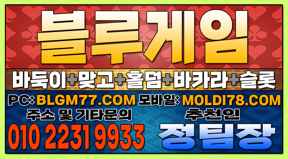 지금 바로 블루게임(바둑이,맞고,홀덤,슬롯,바카라)에서 검증된 온라인 게임을 시작하세요!정기적인 업데이트와 최신 정보 안내를 통해 항상 신뢰할 수 있는 서비스를 제공합니다. 소액 및 고액 금액에 관계없이 모두가 공평한 대우를 받으며, 타 업체 대비 높은 수익률을 기대할 수 있습니다. 최신 정보 안내 및 기타 문의 010-2231-9933 가입추천:정팀장 텔레: jtj007