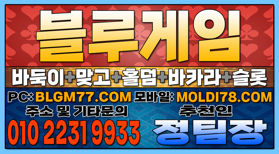 지금 바로 블루게임(바둑이,맞고,홀덤,슬롯,바카라)에서 검증된 온라인 게임을 시작하세요!정기적인 업데이트와 최신 정보 안내를 통해 항상 신뢰할 수 있는 서비스를 제공합니다. 소액 및 고액 금액에 관계없이 모두가 공평한 대우를 받으며, 타 업체 대비 높은 수익률을 기대할 수 있습니다. 최신 정보 안내 및 기타 문의 010-2231-9933 가입추천:정팀장 텔레: jtj007