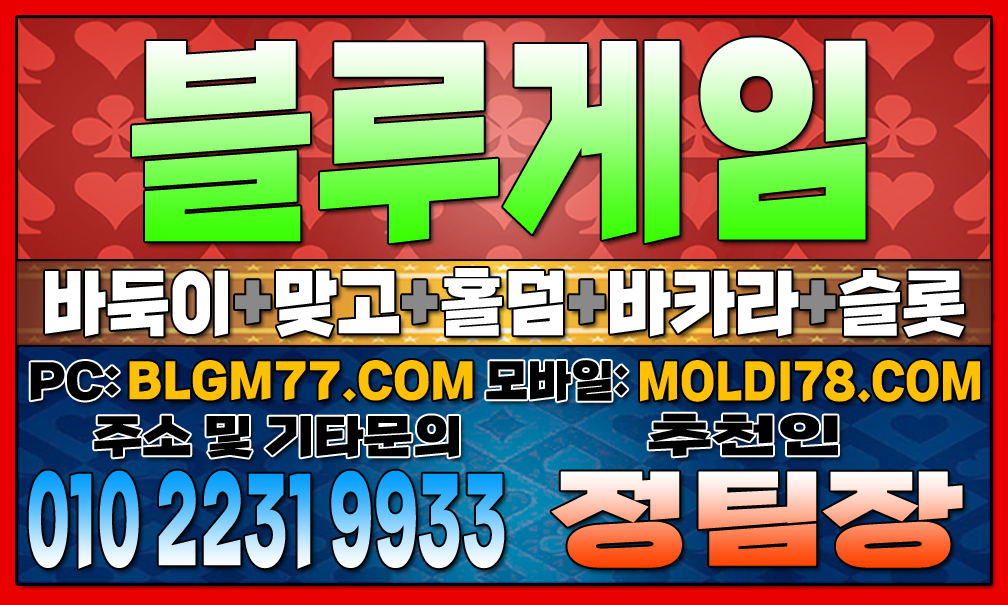 지금 바로 블루게임(바둑이,맞고,홀덤,슬롯,바카라)에서 검증된 온라인 게임을 시작하세요!정기적인 업데이트와 최신 정보 안내를 통해 항상 신뢰할 수 있는 서비스를 제공합니다. 소액 및 고액 금액에 관계없이 모두가 공평한 대우를 받으며, 타 업체 대비 높은 수익률을 기대할 수 있습니다. 최신 정보 안내 및 기타 문의 010-2231-9933 가입추천:정팀장 텔레: jtj007