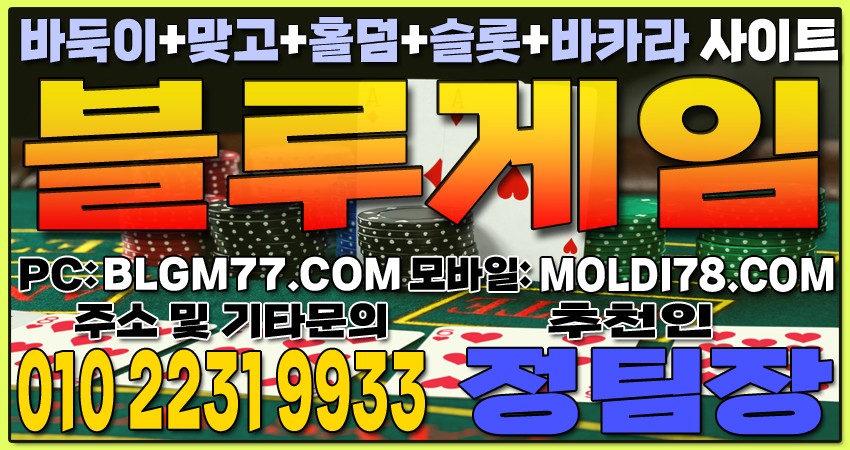 최신 정보 안내 및 기타 문의 010-2231-9933 가입추천:정팀장 텔레: jtj007지금 바로 블루게임(바둑이,맞고,홀덤,슬롯,바카라)에서 검증된 온라인 게임을 시작하세요!정기적인 업데이트와 최신 정보 안내를 통해 항상 신뢰할 수 있는 서비스를 제공합니다. 소액 및 고액 금액에 관계없이 모두가 공평한 대우를 받으며, 타 업체 대비 높은 수익률을 기대할 수 있습니다.