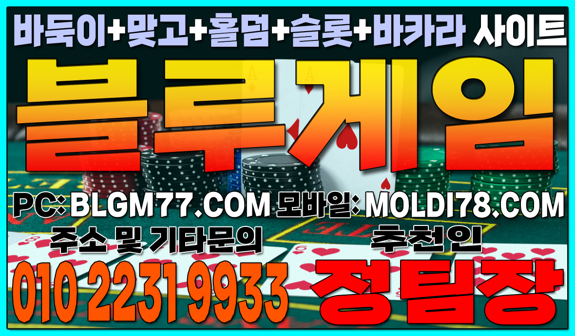 최신 정보 안내 및 기타 문의 010-2231-9933 가입추천:정팀장 텔레: jtj007지금 바로 블루게임(바둑이,맞고,홀덤,슬롯,바카라)에서 검증된 온라인 게임을 시작하세요!정기적인 업데이트와 최신 정보 안내를 통해 항상 신뢰할 수 있는 서비스를 제공합니다. 소액 및 고액 금액에 관계없이 모두가 공평한 대우를 받으며, 타 업체 대비 높은 수익률을 기대할 수 있습니다.