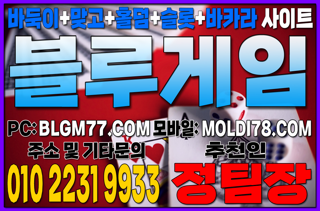 최신 정보 안내 및 기타 문의 010-2231-9933 가입추천:정팀장 텔레: jtj007지금 바로 블루게임(바둑이,맞고,홀덤,슬롯,바카라)에서 검증된 온라인 게임을 시작하세요!정기적인 업데이트와 최신 정보 안내를 통해 항상 신뢰할 수 있는 서비스를 제공합니다. 소액 및 고액 금액에 관계없이 모두가 공평한 대우를 받으며, 타 업체 대비 높은 수익률을 기대할 수 있습니다.