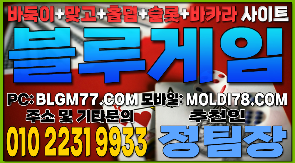 최신 정보 안내 및 기타 문의 010-2231-9933 가입추천:정팀장 텔레: jtj007지금 바로 블루게임(바둑이,맞고,홀덤,슬롯,바카라)에서 검증된 온라인 게임을 시작하세요!정기적인 업데이트와 최신 정보 안내를 통해 항상 신뢰할 수 있는 서비스를 제공합니다. 소액 및 고액 금액에 관계없이 모두가 공평한 대우를 받으며, 타 업체 대비 높은 수익률을 기대할 수 있습니다.