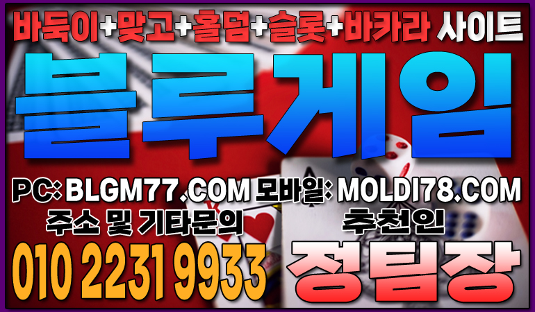 최신 정보 안내 및 기타 문의 010-2231-9933 가입추천:정팀장 텔레: jtj007지금 바로 블루게임(바둑이,맞고,홀덤,슬롯,바카라)에서 검증된 온라인 게임을 시작하세요!정기적인 업데이트와 최신 정보 안내를 통해 항상 신뢰할 수 있는 서비스를 제공합니다. 소액 및 고액 금액에 관계없이 모두가 공평한 대우를 받으며, 타 업체 대비 높은 수익률을 기대할 수 있습니다.