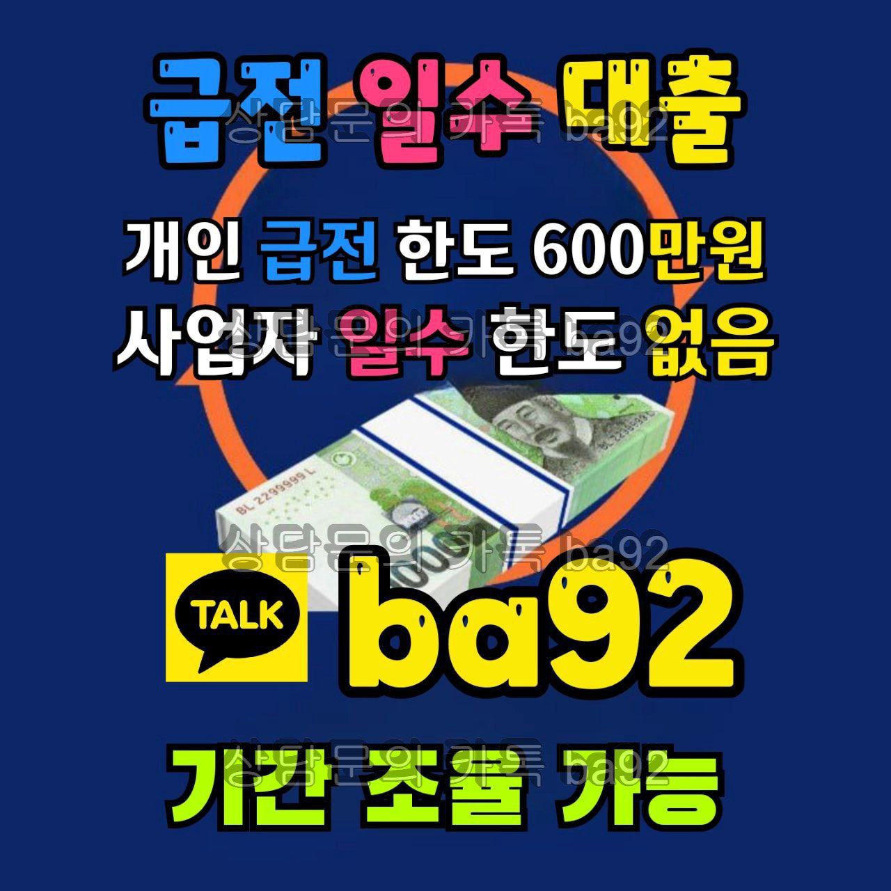 | 제목 | 당일 필요자금, 카톡ba92 급전 개인돈 일수 월변 문의만 하면 바로 진행됩니다 | ||||