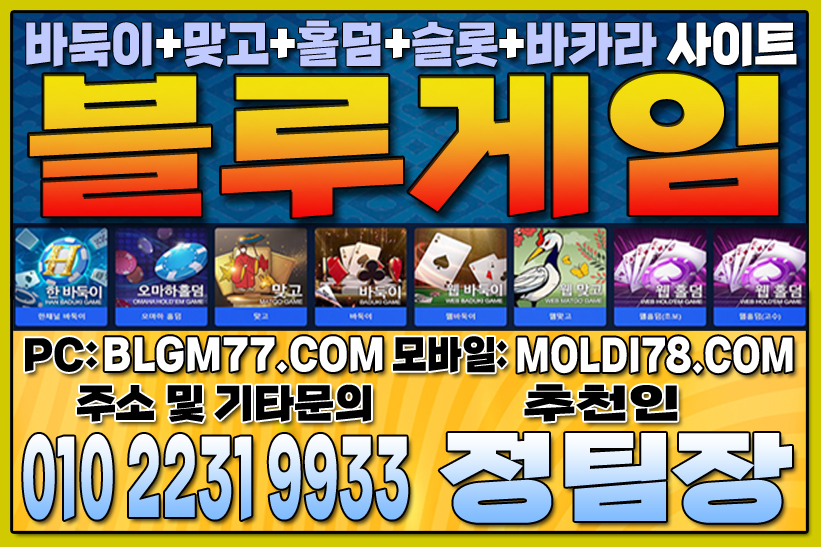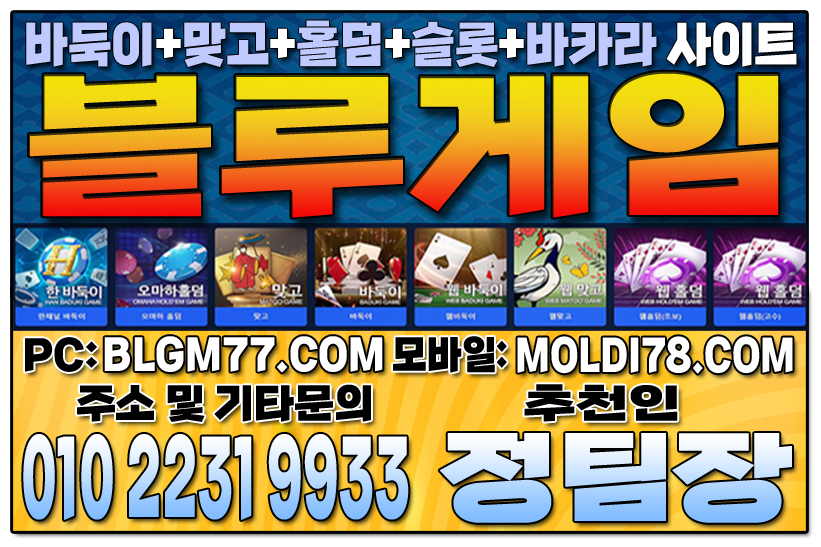 블루게임의 인기 게임 종류-블루게임은 다양한 게임 종류를 제공하며, 그중에서도 블루바둑이,블루홀덤,블루맞고,블루슬롯,블루라이브슬롯과 아이폰 유저를 위한 블루게임홀덤의무설치 웹버전인 와일드홀덤 등이 대표적입니다.이러한 게임들은 유저들에게 흥미로운 게임 경험을 선사하며, 단순한 게임 그 이상의 즐거움을 제공합니다. 최신 정보 안내 및 기타 문의 010-2231-9933 가입추천:정팀장 텔레: jtj007